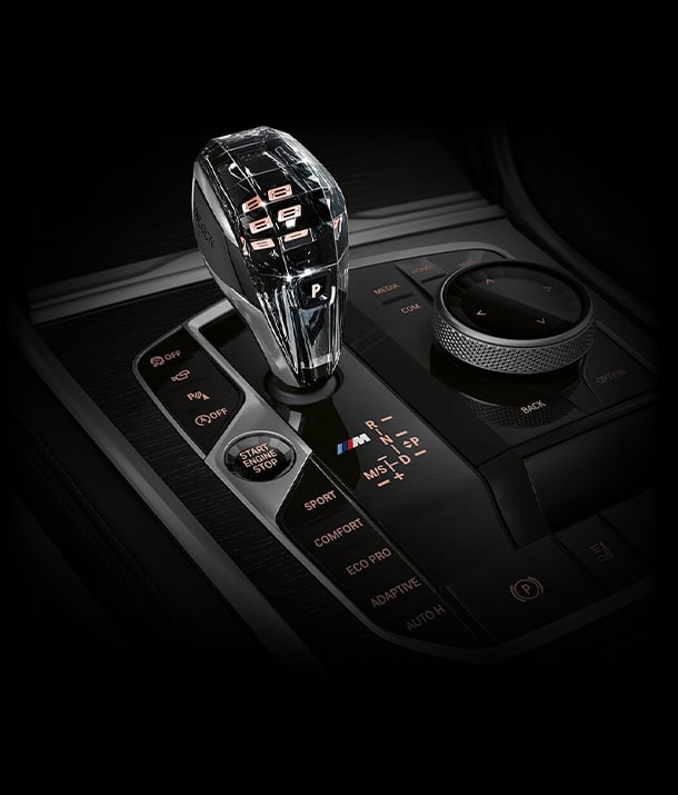Enhance the cabin ambiance with available Glass Controls, including the iDrive touchpad, Start/Stop button, and illuminated gear shift lever.